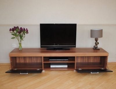 Sự lựa chọn kệ tivi gỗ óc chó không chỉ mang lại cho phòng khách thông thoáng, hiện đại mà nó còn thực hiện một phần nào đó ý đồ của chủ nhà trong việc thiết kế và thi công đồ nội thất trong phòng khách.