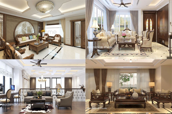 Mẫu 10: Mang phong cách Châu Âu, đồ nội thất gỗ óc chó trong không gian phòng khách này cũng được điêu khắc đường nét hoa văn tỷ mỉ, đặc biệt là bàn ghế gỗ óc chó