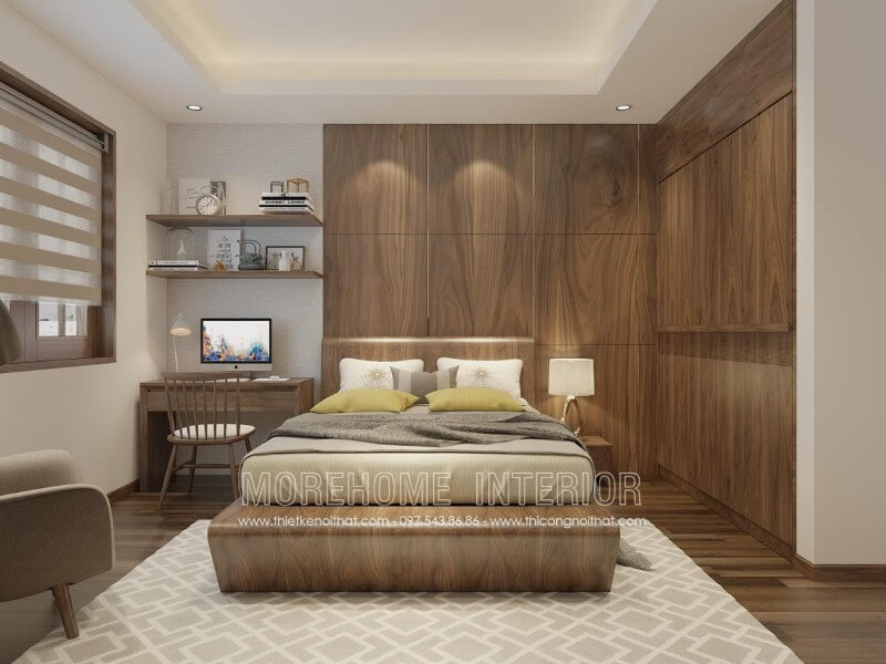 3. Không gian phòng ngủ cao cấp với nội thất đồ gỗ óc chó cao cấp