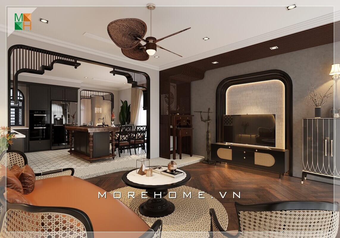 Morehome gợi ý cho bạn mẫu thiết kế nội thất phòng khách chung cư, nhà phố tiện nghi và sang trọng mang phong cách tân cổ điển.