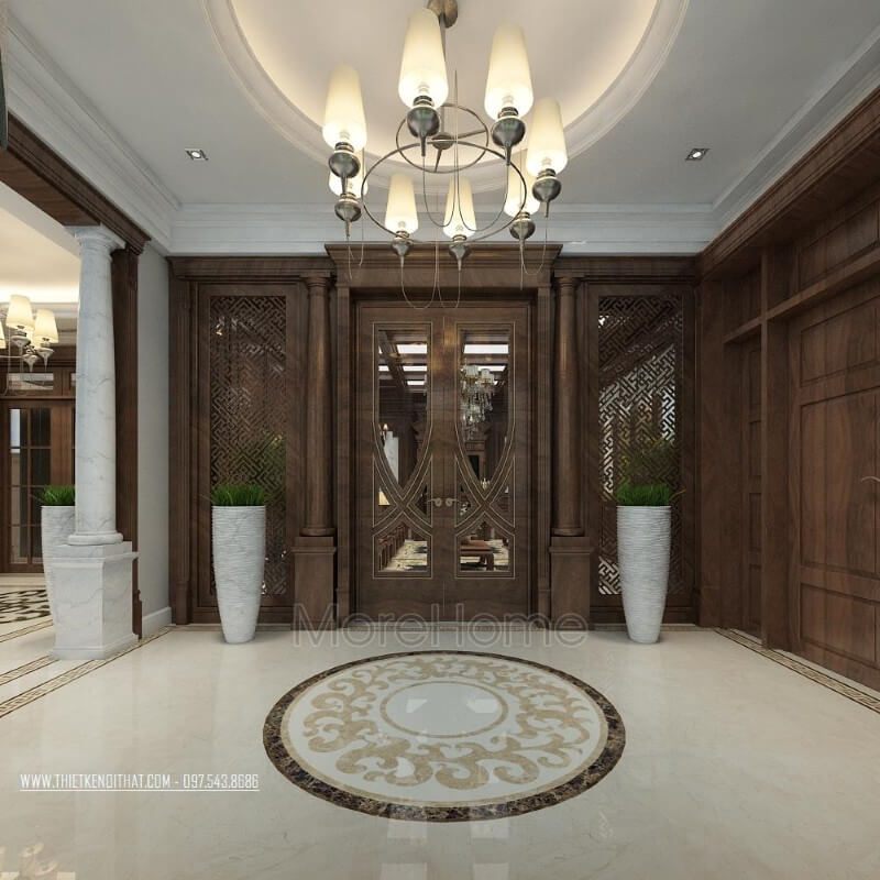 Sản phẩm bàn trà gỗ óc chó tân cổ điển cao cấp ở công trình thi công nội thất biệt thự ecopark Hưng Yên
