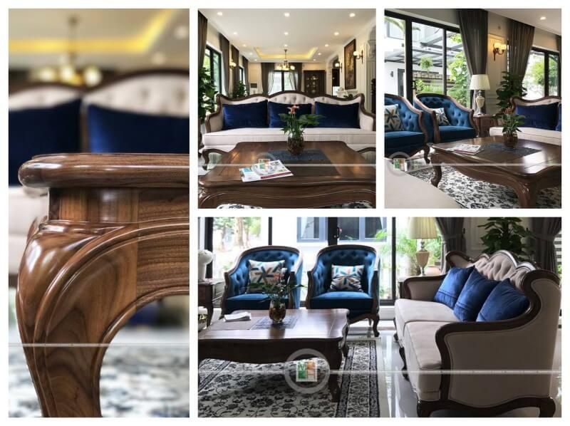 Sofa gỗ óc chó cao cấp, sang trọng cho không gian phòng khách biệt thự