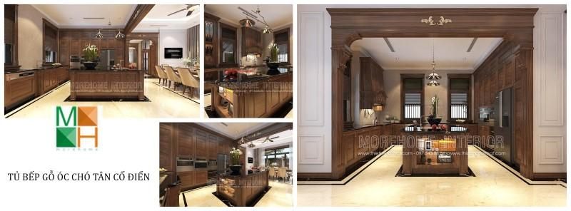 Thiết kế tủ bếp gỗ óc chó phong cách tân cổ điển đang được nhiều khách hàng quan tâm, vì tủ bếp gỗ óc chó mang đến tính thẩm mỹ cao, tiện dụng và đảm bảo an toàn cho người sử dụng.