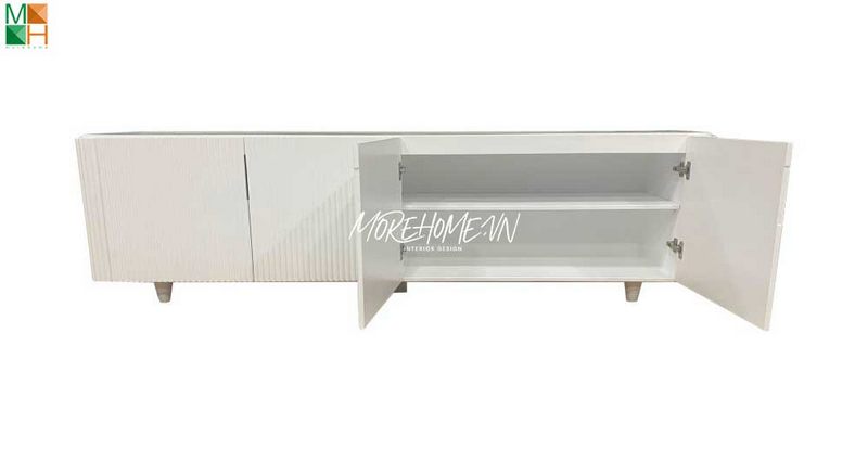 Mẫu kệ tivi bằng gỗ công nghiệp sơn trắng mang lại sự sang trọng cho các phòng khách chung cư, nhà phố, biệt thự.
